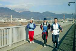 野辺山・・まだ申し込んでないです。1000円割引が・・本日、アートスポーツへ 投稿者:三田 投稿日: 1月 3日(金)00時06分43秒 ★ケーブルインターネットが加入者に無料で提供している領域をオーバーして、今のところ何かをはずさないと、もう上に上げられない。日常業務が始まったら追加領域を申込む予定。★★大晦日から元旦にかけて、12時間ルールに従って酒類を飲まなかった。すこぶる快適な酒臭くない元旦の朝を迎えて、これでアルコールからの脱出かと思われたが、夜は相当量のビールが入って、元の木阿弥。★★★そのマラニックは私だけ30km過ぎからバテていたが、天気が良かったから本当に良かった。元旦からこんなに充実していいものか、というのが正直な感想で、今年のような天気を条件にできれば、元旦マラソンはパスして、善光寺〜北向観音マラニックをやり続けたい。★★★★本日、ライスボウルに出る母校の応援に出かけついでにアートスポーツに寄る。サーモタイプのCWXを1着増やし、冬場の月間300キロキープに挑戦してみよう。元旦マラニック 投稿者:エキップあづみの徳武 投稿日: 1月 3日(金)13時22分28秒 突然の参加にもかかわらず快く走らせていただきありがとうございました。