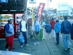2003年元旦、長野駅の中央改札前の通路広場、長野マラソンの大きな看板の前に8:30集合したのは長野マラソンクラブの石川・三田・木下のウルトラ班メンバーと「エキップあづみの」http://member.nifty.ne.jp/equipeazumino/index.htm の徳武さおりさんの4名。徳武さんは昨年9月の丹後街道100kmでウルトラランナーになっており、左枠の丹後・武捨レポートに「松本在住のトライアスリート」として出てきた方だ。面識は松本でのトライアスリート飲み会に出かけたことのある三田がおぼろげながらあった程度でほとんど初対面。ウルトラの完走実績があるので簡単なメンバー紹介と3時頃には別所に着きたい旨話して出発した。