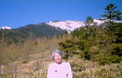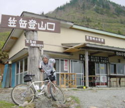 家を出たのは午前10時半、元気が出るように「力」を感じるネーミングのマグナムドライ350m一本飲み干してのスタート。山田温泉へは小布施橋から小布施温泉、蕨温泉経由の道であがる。小布施橋の豊野側からは写真撮影時間を除き正味ちょうど1時間。正午過ぎ山田温泉広場前の食堂でかつドンとビール大瓶一本。温泉広場から12分のぼり、あの南志賀のスタート地点山田温泉スキー場前へ。そのスタート地点から鎌田林道をあがり、笠岳峠と山田牧場温泉街への分岐カーブ迄これも正味1時間15分、そこから峠まで28分だった。写真左上は空いていた笠岳峠小屋のおかみさんに撮ってもらった。山頂が切れているが、もちろん笠岳(2076m)だ。写真右下はその笠岳山頂を前に分岐カーブを少し上がったところでセルフタイマー撮影。とんがりが目指す笠岳だ。