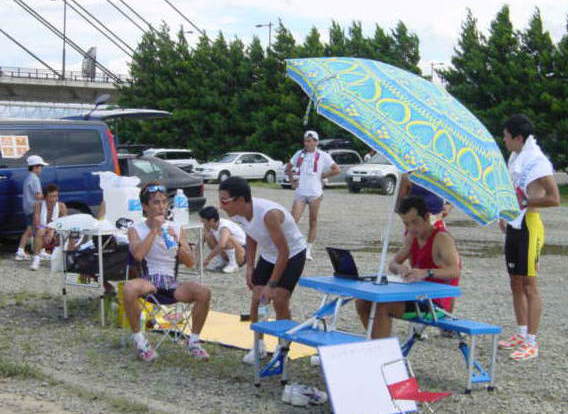 第2ランも19分36秒で山本さんがとりましたが、西條さんが19秒差につめており、もし時間をおいて第3ランをやっていたなら、暑さに最も強い西條さんの逆転があったでしょう。「自転車の終わりまでかな」とおっしゃっていた酒井さんも最後の第2ランまできっちりと走りました。