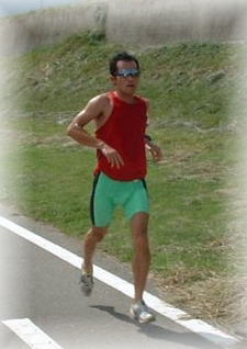 さて、バイク1位で帰ってきた北海道マラソンサブスリーの梨本高之さん(TEN&NMC)と第2ランを待っていた5名が同時にスタート。丸山一さんはインターバル走だったか、途中切り上げ。第1ランを先の北海道マラソンの入りの5キロのペースで通して体力を温存していた三田がカシオデジカメを持って梨本さんを追いかける。2.5`の折り返し点過ぎの少し先までは、何とか先に出ていましたが、息切れ。