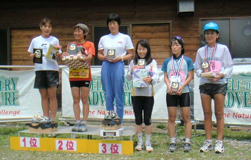 私のもうひとつの仲間、走りの達人たちの集まり、「フル百回楽走会」のメンバーが4名来ており、うち、迫田女史が女性の年代別の表彰時間帯に時を合わせたかのようにゴール、早速表彰台に立っていた。ここでは9名が完走した女子の部6位までの表彰式写真を1枚紹介しよう。6位一番右がフル400回超の迫田さんだ。女子のトップは奈良県の安部利恵さん4時間11分15秒、ちなみに男子トップは2時間55分46秒の山本恭規さん(静岡県)だった。