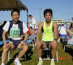 第3回長野マラソンでフル初挑戦、38`リタイア、クラブ加入8月、そして10月の大町アルプスのハーフで2時間を切ったばかりの大貫博さん(33、長野市)は11月11日に埼玉・群馬等県境の渡良瀬遊水池で行われた「2001渡良瀬遊水地マラソン」でフルマラソンの初完走を果たした。