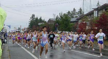 梨本…曇り空から雨が降り出し、スタート前はかなり寒いです。アップしていても脚が重く、今日は諦めムードになりました。ぐずぐずしていたら、列に並ぶのが遅れ、かなり後方からのスタートになりました。号砲からラインまで50秒かかり、ペースも上がらず2kmで8'37、5kmで20'37。中間点42'20"、15kmを59'41からはペースが上がらず、前を走る牛の着ぐるみを目標にしますが、なかなか縮まりません。Last1km1h20'18で牛に並び、1h24'07でゴールしました。グロス1h25'01は年代72位。山本さんは1h18'15と川崎くんレベルの素晴らしいタイムでゴール。太田さんも22分と、このコンディションでは立派です。雨はひどくなり、表彰を見ている間にずぶ濡れになりました。7300人の参加者も、抽選時には70人ほどになり、ホノルルマラソンの倍率もかなり低くなって期待したのですが結果はダメ。今年も解散後は片倉館で入浴、疲れが出て、湯船の脇で洗面器を枕に眠ってしまいました。お天気には恵まれませんでしたが、寒い中沿道で応援してくれる人のおかげで楽しく走れました。参加賞のTシャツも今年はパイル地でちょっとリッチでした。-10/30/1:07-(注:全文は相互リンクのチームイージー長野のHPで。なお、TENメンバー川崎・大田の両氏はNMC主催の長野マラソン試走会-3月-に参加していました)