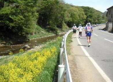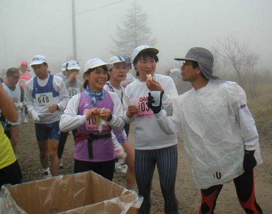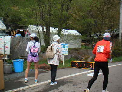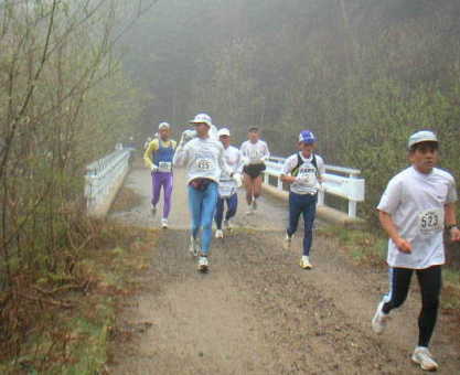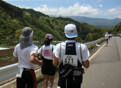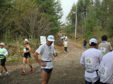 (編集者注2)文中に出てくる馬越峠の「大爆走」は、現在先にアップの第8回八ヶ岳野辺山ウルトラマラソンページに入れてあるNMC掲示板4月28日の石川さんの書き込み、その中のコース戦略…「79kmに向かう馬越峠は,このコース最大の難所.ここは走れないので歩く.峠を越えたら急な下り.私はここを爆走(昨年は80-85kmを26分でした).」からきている。これに三田も同じ日の掲示板に「目安は石川さんの言うように暴走とまでは言わないが、馬越峠、あそこを走って下れるかどうかで、あとは決まる。」と書いていました。