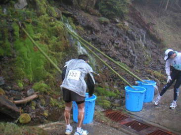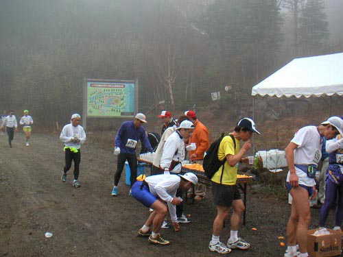 25kmまではトレイルの下り.給水所にも立ち寄らず一気に駆け下りる.稲子湯は長居をせず,中間点へ向けての下りを快走.岡谷から参加という人と話しながら走る.今回は100km初挑戦で11時間目標,