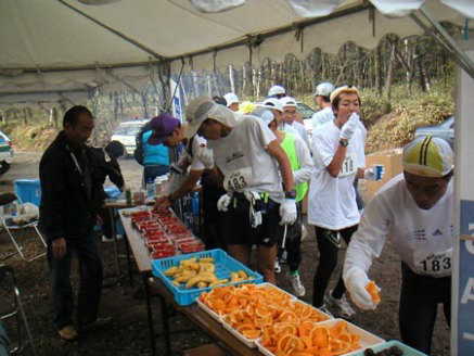ここまではスポーツドリンクだけで走ってきたので,あまり食欲はなかったが,後半のことを考え,ここではじめて固形物を口にした.