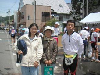 50kmエイド、石川さんに遅れること1時間の高木406・三田を待っていた石川さんの奥さんとお友達。おにぎりを食べたりりとロング滞在中に三田が撮影.。これでは、先行した石川さんに折り返しで会うと期待されても無理だった。