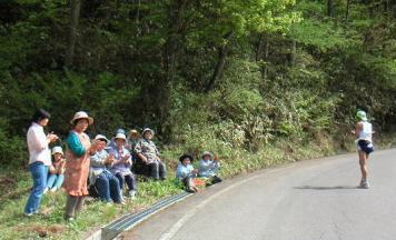 昨年は50kmを走った高瀬さんに、稲子の湯からの坂で、後ろから声をかけられてしまった。そしてしばらく一緒に走らせてもらった。フルのベストは私より速い。今回は、応援とゴールアナウンス。これでゴールまで行かないといけなくなった。