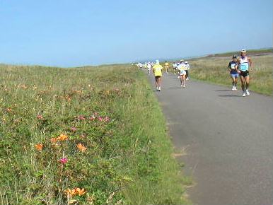 コースは距離を稼ぐためだろう牧場が続くまっすぐな道を走る部分、サロマ湖畔道路を走る部分、主要国道を走る部分、そしてワッカ原生花園内を走る部分に分かれ、湖畔と原生花園のところがまさにサロマだ。