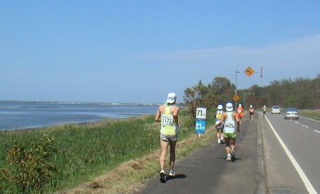 サロマでは、帽子をしてない方もあれば、ほとんどがランパン・ランシャツ。一方、ごく少数派では女性ランナーが二人並んで、ウルトラメッシュ・ジャケットで走っておられたし、CWXなどのロングタイツ派、長袖派がいる。