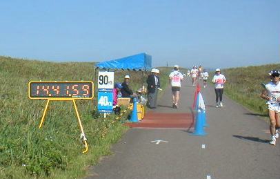 NMCの三田は6月30日、念願かないやっと日本の100kmウルトラマラソン発祥地・北海道サロマ湖周辺一帯で開かた第17回のサロマ湖100kmウルトラマラソンに参加、電光表示で10時間52分ほどでウルトラ100km、9度目の完走をはたし、クラブ内の同距離完走回数ではトップの石川さんに並んだ。