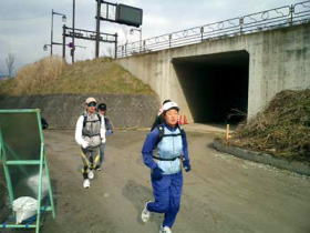 この戸倉-坂城間で三石さんに膝の痛みが出ていた。このままでは最後まで走りきれないと判断して、電車利用を勧める。膝を昔痛めているので大事をとってもらった。あともう15kmくらいでゴールだが、途中から歩きとなった場合、1時間2時間はすぐに経つし、午後4時を過ぎれば冷えてくることも考えなくてはいけない。戸倉までに歩きが入っていた小宮山さんも正しく三石さんと同じ選択をされた。木下さんの奥さんにしなの鉄道の坂城駅まで2人を送ってもらうことにして、先に進んだ。