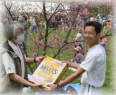 | 29 | 日 | ‐ | 完全休養 | 58.6 | この日は長野マラソンでサブスリーを出したクラブメンバーの3名に公約の「ビール」を渡すのが目的(あと1名あり)だった。写真は丸山一二三さんにご希望のモルツを渡す贈呈式。 河川敷の同公園は桜の花が満開で、種類の違う桜も咲きはじめで、暖かい日差しのなか、とてもいい感じだった。●第4週15km、累計153km |