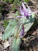今年は、旭山ふもとのカタクリが9日に城山の桜より先に満開になってしまい、私が横浜からの走友と一緒に見に行った14日は既に峠を越して、しおれ感があった。髻山は日の当たる山頂付近が満開、少し下の林の中は、所々満開、まだ枯葉の中から姿を出していないのもあって、かなり幅がありそう。登山道入り口は、咲いているが例年より数が少ない感じだった。
