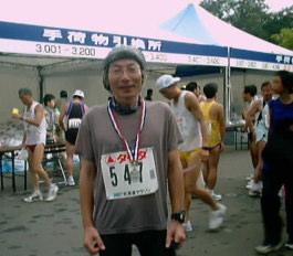 3時間29分48秒、6回目の同大会は過去3位の記録。トレーニング不足でそこら中に痛みを抱えて3時間半を切れなかった前回99年の一応は雪辱を果たす。また、昨年のNAHA以降、八重山、さいたま、長野と4大会連続で左膝に痛みを抱えたが、今回は「無傷」のゴールだった。予定より3回少なかったが、笠岳峠7回の自転車ヒルクライムの成果ありだ。これで膝周辺の筋肉が鍛えられ、元にもどった。
