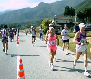 タフなコースで、3時間半の調整ではプラス13分だった。15キロでトイレに駆け込み「大」。このロス以降はかなり攻めの走りをしたが、30k近辺の300mの一気なのぼりはきつく、「ヒスイの里30k大会」を500mの一気登りを思い出した。そして変則的な3周回の間にゴルフ場内の舗装路を何度も登らされる難コ ース。3時間20分調整で、3時間35分かな。今は私よりうんと速いトライアスロンの竹内淳子さん(女子優勝)が3時間24分だから、私の場合3時間15分調整でこないと、ここで30分は切れないだろう。NMCメンバーでこのコースなら、登りトレーニングが常態の塩沢さん,石川さんがトップを争うだろう。
