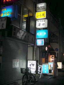 13日は14日の東京出張の準備で、遅くなり、荷物も出てしまい、走って帰るわけにいかなかった。走れなくなりだすと続くものだ。13 水 ‐ ‐ ‐ 14 木 ‐ ‐ ‐ 東京出張で家を出るのが朝が7時40分と早く、とても辛かった。仕事が終わり5時少し過ぎ、久しぶりにアートスポーツへ。勇んで行ったので、ちょっと買い過ぎてしまった。ランシューズ2足、長袖ウエア5点、後は高木さん共々愛用のゴムのランニングシューズ紐などの小物。これではせっかく渡辺さんに教えていただいたもう1軒のお店に行けない。そちらは佐倉の時にして、新橋に向った。前夜、アンケート葉書を出しなさいと催促の電話をくださったフル百の吉野事務局長に場所を聞いたフル500回超の熊谷さんのお店。新橋駅の出口、鳥の名前、烏何とか口?から出て、怪しげな「エステ」のお誘いが危ない界隈を100mほど進むとその店はあった。ピンクでなく、黄色の「ふる百」看板が見える。後は、このページの冒頭部分を。