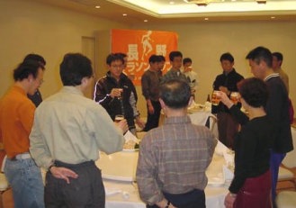 そんな、西島さんも総会新年会には間に合い、総会新年会は柳沢・小林の両新会員を含む20名で開催。自己紹介では皆に初マラソンの頃の話を入れてもらった。バスで長野駅に送ってもらってからも、10名ほどが幡竜でラーメン2次会。私はその後帰りの電車で寝てしまい、須坂よりの戻りとなった。以前は確かNMCの忘年会か新年会で信濃吉田で降りれなくて長野―須坂間を何度か行ったり来たり、最後に電車がなくなり、須坂からタクシーで帰ったことがある。そんな気持ちよく飲めた総会新年会だった。冒頭の写真は手前左、後姿になっているが、この時間帯では紅一点の高橋さん、海外マラソンはクラブで一番多く、直ぐソウルが控えている彼女の発声での乾杯シーン。