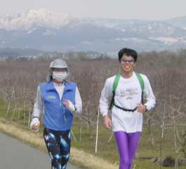 2枚目の写真は夏は北海道オロロン・トライアスロンの人・笠原さんとマスクの私。もう自転車のシーズンですね。野池さんに撮ってもらった1枚。