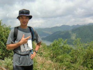 26キロあたりで初めて三浦ダムが見えてくるが、そこで写真を撮ろうとしていて、昨年一緒に走った林さん(左)が追いついてきた。私の写真を撮ってくれたのだが、ここでは その林さんを紹介。昨年は私が引っ張ったが、今年は前日のMTBの100キロ、2度のパンクで30キロでタイムオーバーしてしまい完走できなかったという林さんが体力温存で私を引っ張った。ここから先は速かった。したがって、写真の数もぐんと少なくなる。その辺はまた第2回のこの大会ページでお伝えしよう。