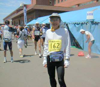 サロマでは、帽子をしてない方もあれば、ほとんどがランパン・ランシャツだし…。一方、ごく少数派では女性ランナーが二人並んで、ウルトラメッシュ・ジャケットで走っておられたし、CWXなどのロングタイツ派、長袖派がいる。私(陸連登録162)も下はCWXに、長袖UVカットウエアに身を包んだ。だから大方が暑さ対策が弱いかな、という感じを受ける。
