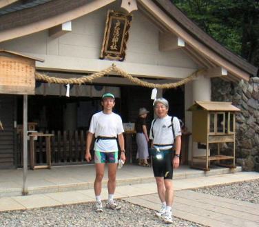 曇りがちで助かったが、飯綱へ上がる前、スパイラル前までで手に持つペットボトル500と、ウエストポーチのペットボトル300をあけ、800mlの水分補給、ディバックの中にアミノバイタルウォーターとローソンで購入してきたアクエリアスの凍結パック500mlが入れてあるが、これはまだ先で使用。さらに、健康マラソンコースでも2度給水補給、奥社へ着くまでに飲んだ水の量は2500を越えた。