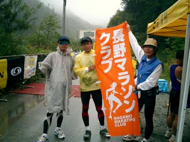 | 21 | 日 | 42 | 7:00〜セルフディスカバリークロスマウンテンマラソン | ‐ | 0時30分に起きた。支度をして家を出たのは2時を少しまわっていた。更埴インター前の宇佐見で給油して更埴インターからあがったのが2:35頃、塩尻インターの下り時間は覚えていない。国道に出てからは、日義の道の駅でトイレ休憩、三岳村の道の駅でペットボトルお茶500mlを購入で立ち寄った以外は走り続けて受付の松原スポーツ公園に5:15頃に着いた。ちょうど木下さんが受付に行くところだった。 ディバックを背負うか、給水ボトルのウエストポーチで走るかは雨の状態で決めるつもりで2通り用意していたが、軽装備で走り抜ける方を選択した。 氷ヶ瀬への移動バスは6:00、このバス待ちで田村さん、あわびの哲さんと合流。思えば、昨年この大会で田村さんと初めてお会いした。ネット環境にいるともう2〜3年のおつきあいがあるような感じになってしまうから不思議だ。ウルトラを走っている人とは何か同志的な雰囲気が生まれると言ったらいいだろう。そのことも大きい。秋田、くびきの、野辺山と、併走したわけでないが300kmも一緒に走って来た感じ。 さて、スタート地点では、ゴール地点へ移動させる荷物袋からNMCのぼり旗を出して写真撮影していると、昨年写真撮影をお願いしたワコールCWXのスタッフらしい女性が我々3人のCWXタイツを見つけて写真を撮ってくださった。(添付で送ってくださいね)。昨年は「わぁー、CWXチーム」と喜んでくれたが、今年はコース途中でも「長野マラソンクラブ」と当クラブ名で応援してくださった。写真のブルーのラン用ベストを着用のままスタート、しかし登りで暑くなり蒸れ感が出てきたので、これを脱いコンビニポリ袋に入れてウエストポーチから提げた。先をゆく田村さんのそばにつけて、しばらく息の聞こえる範囲で走った。一度登り部分で抜いて、抜き返され、もう一度抜いてからは後ろを意識しながらどんどん前に行った。それぞれどの距離だったかは正確に覚えていないが25km以降は先行のままだったように思う。雨にけむるという感じで、谷間の景色で渓流が見えたところは1カ所のみ。谷間の里や行く先々の山また山に続く林道の先は見えなかった。ましてや木曽御岳も。 田村さんは先週、丹後で100kmを走っており、同じ日に12kmのトレーニングランのみだった私が田村さんの後方を走る訳にはいかない。その気持ちがずっと続いて、またぴたりとついてくる田村さんの姿を気にして走り続けた。雨では防水でないデジカをさらすわけにもいかず、走りを停止したのは30km手前で左のシューズひもがほどけたところと、前半での1回のトイレ(小)タイムだけだった。 当初から雨のため「早く切り上げる」方針で昨年の田村さんタイム4時間10分は切るつもりだった。5kmごとのタイムを見ていると、20kmあたりで「4時間は切れる」と確信した。そしてそれを実現すべく、のぼりでは給水しながら呼吸を整えて走り、砂利道、ガレ場状部分、また水たまりもあったが、下りでは出来るだけ路面の安定したところと最短路のコース取りをして一気に駆け下りた。 終始雨は降っていたが、大降りにはならずに助かった。呼吸も楽で、給水も6kmごとのエイドで今回初めて紙コップが用意されたが、これを各所でコップの7分目ほど飲んだのと最初から持って出たウエストポーチの500mlボトル1本で充分だった。あの残暑のままならこれまでの7月と同様、かなりの水が必要だっと思うし、暑さダメージも相当出ただろう。 ラスト2kmの距離表示がおかしかったのは35km、或いは40km地点からのミスか不明だが、とにかく1秒でもいいと思っていた4時間切りを、約6分も余裕を残すゴール。すぐに田村さんもゴールし、ここでは田村さんのゴール写真撮影にも成功した。 ゴール後は冷えが来る中で、荷物受け取り場所と表彰式の会場が昨年と違っていたのにはとまどった。しかし、屋付の休憩所で助かった。着替えてメニューにあった2級日本酒熱燗に惹かれたが、飲んでは帰れないので、温かいそばを注文、木下さん哲さんらの到着を待った。 木下さんも自己記録を更新、木下さんはこの土曜日から甲州夢街道。初挑戦が雨となり心配した哲さんも無事ゴール。哲さんは次週村岡ダブルフルだそうで、次月の四万十では田村さん一緒になる。私が42kmの表彰式で年代別50歳代以上で入賞のメダルが出る可能性が高かったが、薄着だったこともあり、競技後の冷えが来ていて、帰りも各自別々のクルマでの自走もあるので、退散することにした。昨年は順次結果も貼り出されていたのに、今年はそれもなく、トップがどのくらいだったかも確認できなかった。すべてネットでの発表待ちだ。累計137km |