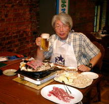 | 19 | 金 | ‐ | サボリ | ‐ | メルパルクでの飲み会の日。メルパルク1Fレストランでは9月31日までステーキ食べ放題2000円を開催中で、これを見た石川さんがやろうと言っていたが、さらに菜津子さんからも掲示板でリクエストが入り、丹後の話を聞く、カナダへ行く石川さんの壮行会も兼ねてと、実施することになった。同日の写真は電池切れでとれずだった。今年何回目のメルパルク生だろうか? 以下は<掲示板書き込みと同文> 公式にはメニューにない生飲み放題を頼み、誰かが来るまでと、石川さんと生と枝豆だけでいましたが、隣の女性3人組が頼んだステーキ食べ放題コースのステーキがうまそうで、3人目が来る前に、もう待てずに、そのコースを頼んでしまいました。★田村さんが仕事帰りに寄って丹後の話を聞かせてくれました。クルマで帰宅の途中で、田村さんはコーヒーのみ。そして次に武捨夫妻、西島さん、菜津子さん。★★私は下から2番目の確か3枚、皆様がどれだけ食べたのか聞いたのですが、忘れてしまいました。来週は木曜日午後7時集合でまたするらしいので、参考までに食べた枚数教えてください。★★★これが若さかな? なんと私・三田は3枚でダウンだったのです。 |