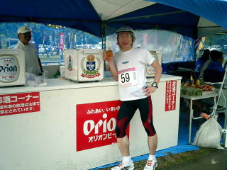 ゴール後は真っ先にオリオンビールのブースに寄り、ウエストポーチから財布を取り出してさっそく3杯、いやあ写真はこれだね、と思い、それを販売員の方に撮ってもらった。