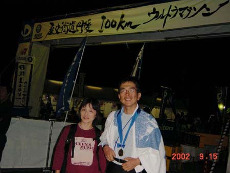 | 9月15日、ゴール後の著者・武捨俊之さん。応援バスで移動した陽子さんと一緒に。 |