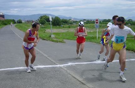 第18回のランナーズ親睦駅伝(5区32km)が日本無線ランナーズクラブの幹事により川中島古戦場裏の千曲川サイクリングロードを利用して7月7日に開かれた。昨年と同様幹事チームと長野マラソンクラブチームだけの参加だが、今年は双方2の4チームとなり、3区と5区を繰り上げスタートとする走者が見える運営で、激走を演出、それぞれに夏に負けない暑い走りが見られた。