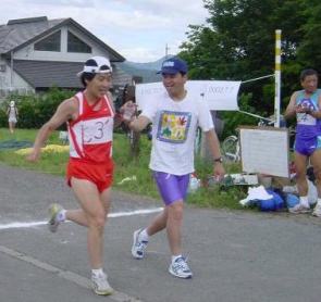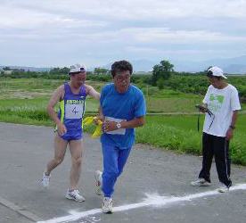 スゴイの一言、その体力と精神力には敬服しました。まさに、我々の思いが遠く北海道サロマを走り続ける三田さんの下に届いたであろうと確信した瞬間でした。(轟哲郎)