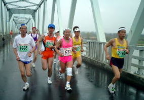 | 小布施橋豊野より、桐生走友会の2人がいる。622は桐生の会長でフル百の藪田さん。大町・八ヶ岳でもおなじみ。写真にをクリック |