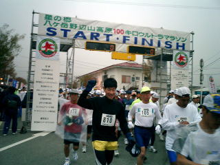 ゼッケン810はウルトラ初挑戦のNMC・八木正孝 この日朝会場に着いてスタートラインきる。NMC本年1月加入の新メンバー。「まずは、完走出来て超うれしいです。時間に余裕が無いわけではありませんでしたが、40キロ以降は常に時間を気にしての走りになりました。詳しい報告は後程します。皆さんありがとうございました」と掲示板に一報があった。