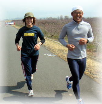 | 山口さん夫妻3月30日の小布施橋から約26kmの試走会で、本番の17q地点通過のところ。お2人次は野尻湖トライアスロンです。 |